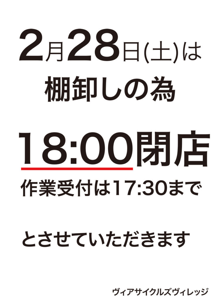 2月28日(土)の営業につきまして