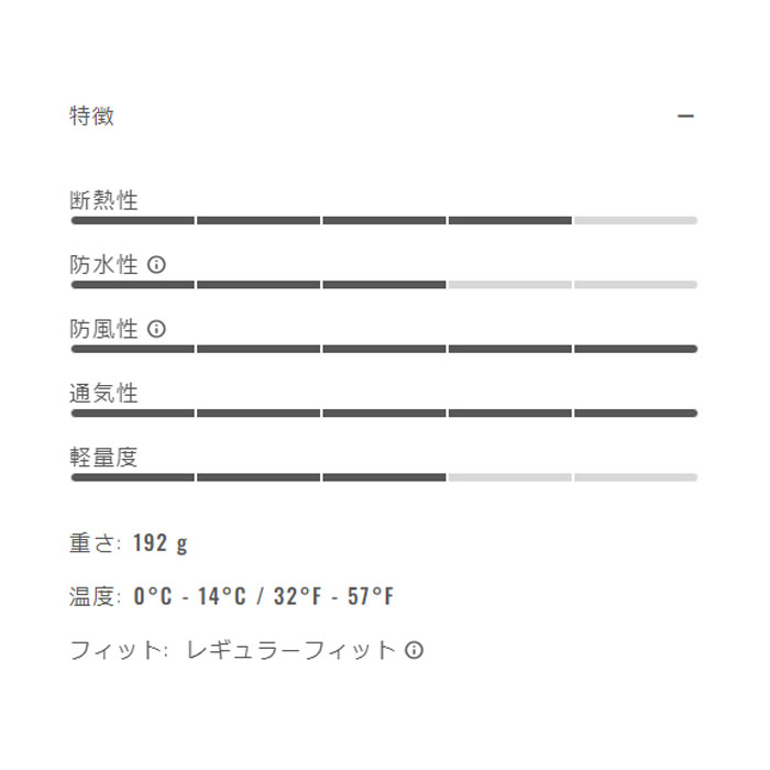 ・Polartec® AirCore インサレーションを採用したマイクログリッド構造の生地は、優れた通気性とストレッチ性を両立