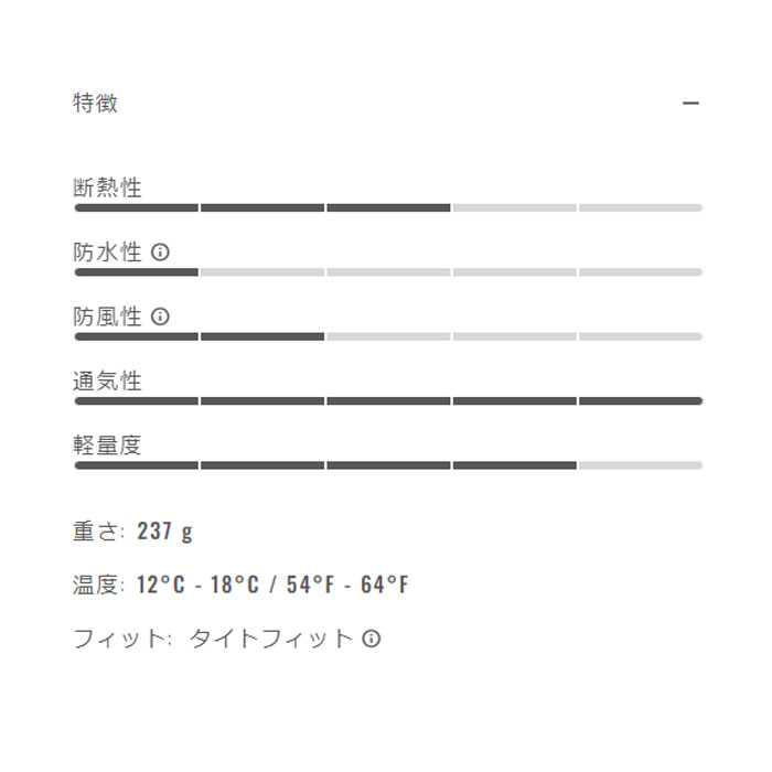 ・Thermoflex フリース素材(ナイロン80%、エラスタン20%) を使用し、しっかり暖かく抜群のストレッチ性を実現