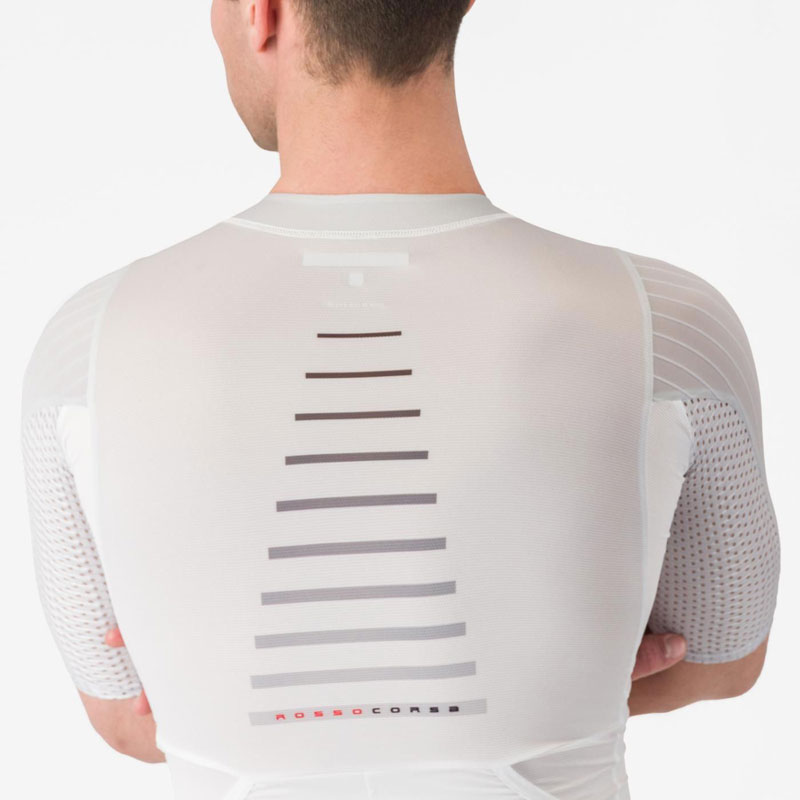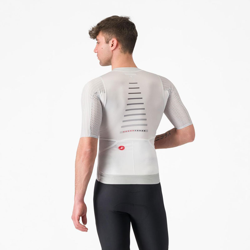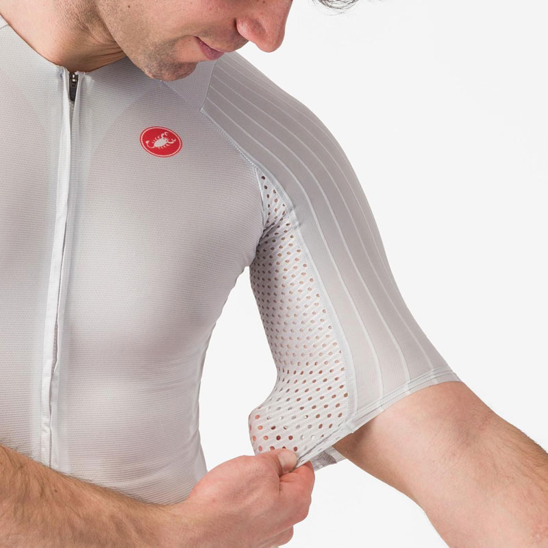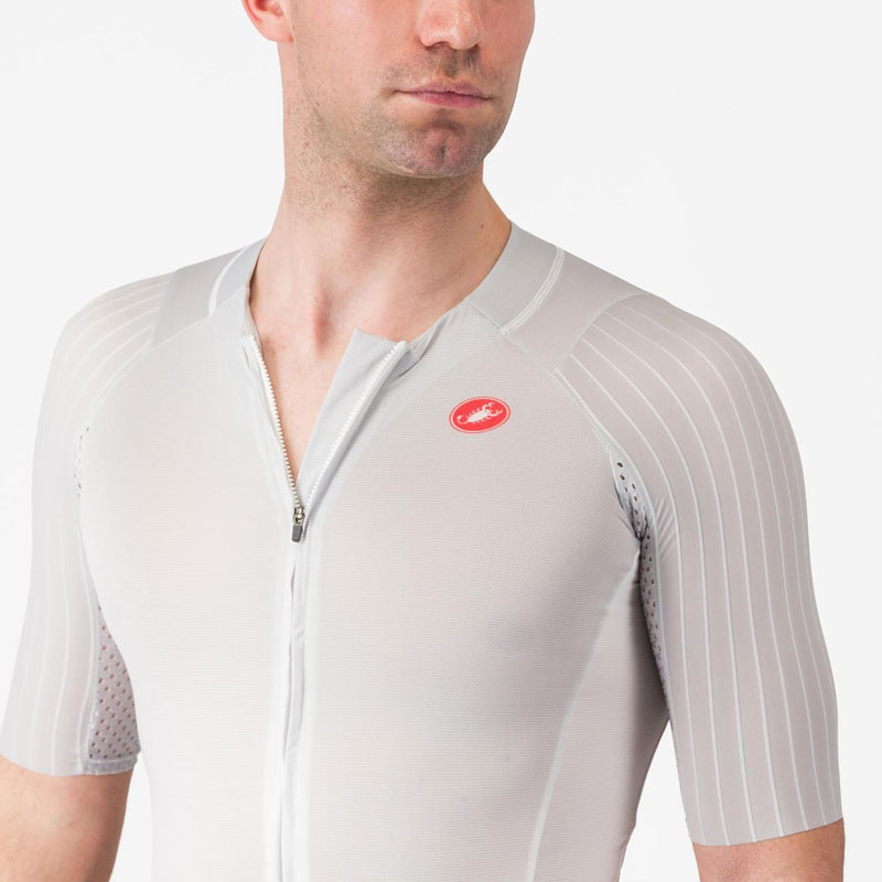 ・袖と肩にリブ素材を採用し、レーススピードでの抵抗を最小限に低減