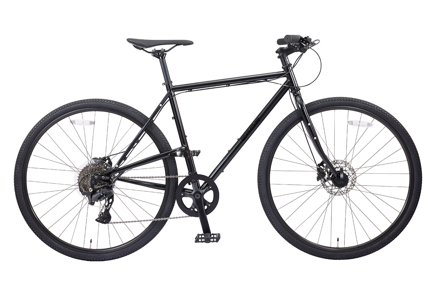クロモリフレームのしなやかさが路面からの衝撃を吸収し、快適性を向上。標準装備の700c × 40cのセミブロックタイヤが振動を軽減し、油圧ディスクブレーキによる確実な制動力と相まって、舗装路はもちろん、グラベル(砂利道)も楽しめる走破性を備えています。