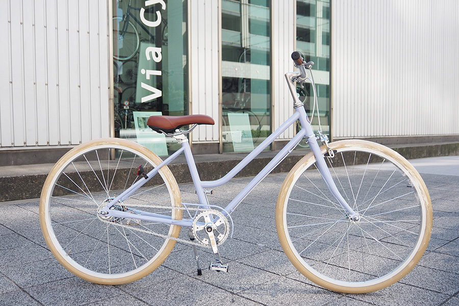 またぎやすい形でどんな服装でも安心です。アイボリー色のタイヤで柔らかい印象に。TOKYOBIKE Jr. Step (ステップ) は変速のないシンプルなデザインで、こどもの力でも軽いこぎ出しの自転車です。