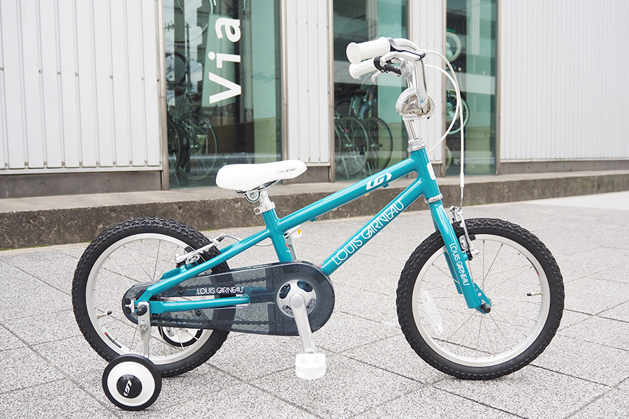 補助輪付きで軽くてシンプルなキッズバイクです。ズボンの裾の汚れや巻き込みを防ぐチェーンケース、弱い握力でも止まれるVブレーキ、ステムとハンドルのパッドなど、お子様の安全に配慮しました。フレームやホイール部分には軽量で錆び難いアルミ素材を使用しているので自転車全体の重量も軽く、パパやママが持ち運ぶときでも楽なのがいいところ。