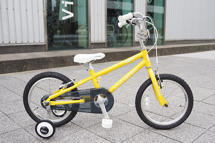 補助輪付きで軽くてシンプルなキッズバイクです。ズボンの裾の汚れや巻き込みを防ぐチェーンケース、弱い握力でも止まれるVブレーキ、ステムとハンドルのパッドなど、お子様の安全に配慮しました。フレームやホイール部分には軽量で錆び難いアルミ素材を使用しているので自転車全体の重量も軽く、パパやママが持ち運ぶときでも楽なのがいいところ。